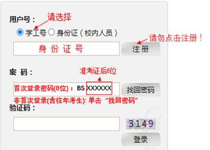 财务处”,在“业务办理”中选“学生缴费”。考生账号已开通,切勿自行注册。复试收费标准:80元/生(仅申请考核考生,硕博连读考生无须缴费)。用户号选择“学工号”,输入正确的身份证号。缴费系统初始密码(8位)为大写字母“BS”加准考证编号后6位(准考证查看网址://yzgmis.pixivtop.com/zsgl/bswb/login.aspx),如“BS123456”。非首次登录缴费系统的考生(含往年报考考生及误注册考生)使用“找回密码”,登录并缴费。
