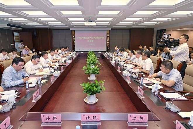 、附属医院、药学院、转化医学研究院等单位和学院负责人参加会议。市人民医院负责人及阿斯利康、罗益生物、华瑞制药、贝迪生物等企业代表参加座谈。会议由校长陈卫主持。