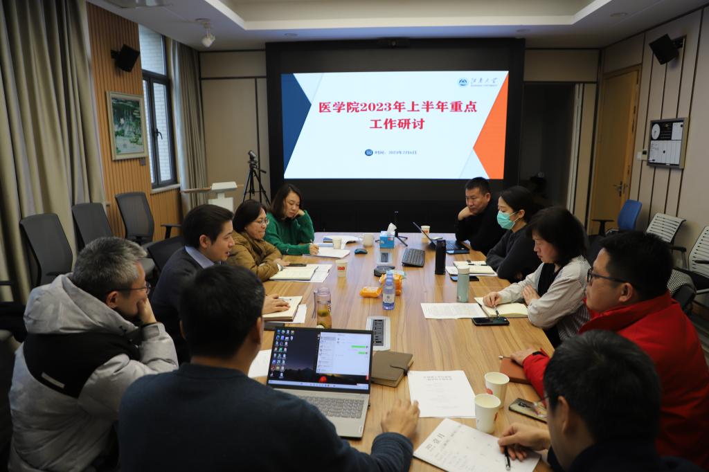 高质量发展计划》写入学校“奋进计划”,举全校之力推进医学教育高质量发展。在市、校领导的共同关注和关心下,学院在新的任期要抢抓机遇,确保高质量完成一级博申报、专业认证及与附院融合三项年度重点工作,全体班子成员要落实主体责任,强化自身能力提升,以更强担当完成上半年重点工作,为学院高质量发展开创新局面。