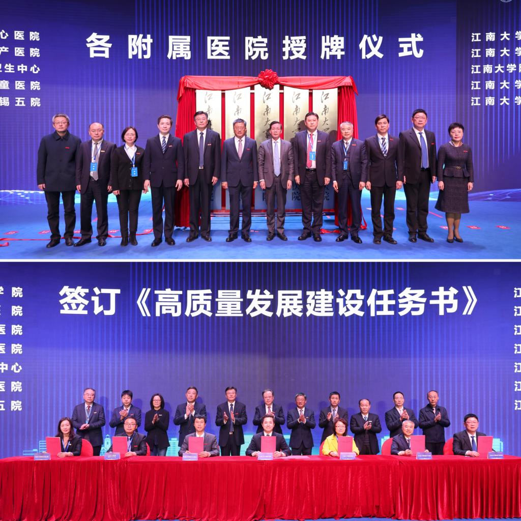 会议伊始,陈卫校长、陈国强院士、符惠明副书记等共同为各附属医院授牌。而后,马鑫副校长和各附属医院领导签订《高质量发展建设任务书》,全体校领导见签。任务书的签订既是目标和责任的共担,更是信念和使命的传递,对全面提高无锡地区医疗卫生事业和p站