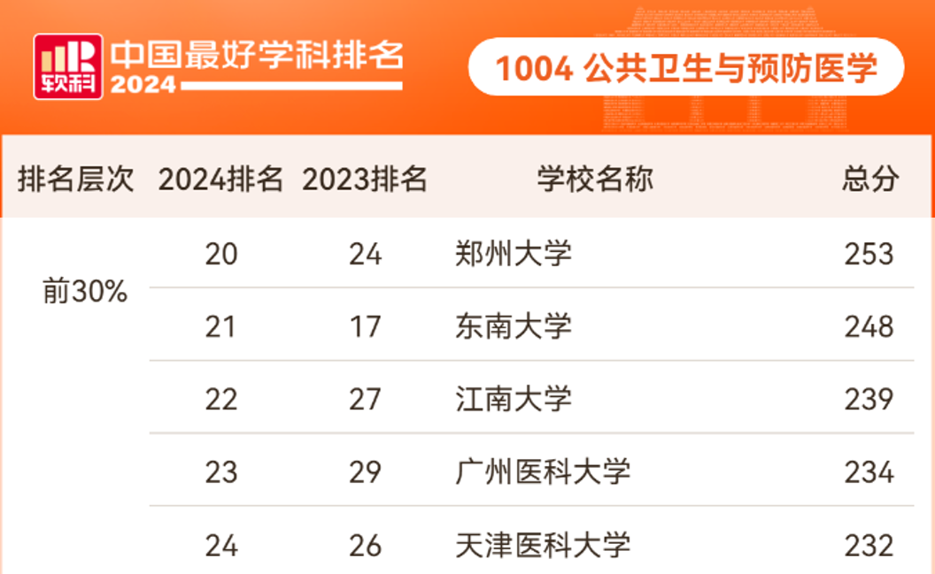 2024年10月15日,高等教育评价专业机构软科正式发布“2024软科中国最好学科排名”。在“2024软科中国最好学科排名”——公共卫生与预防医学学科排名中,全国共入围p站