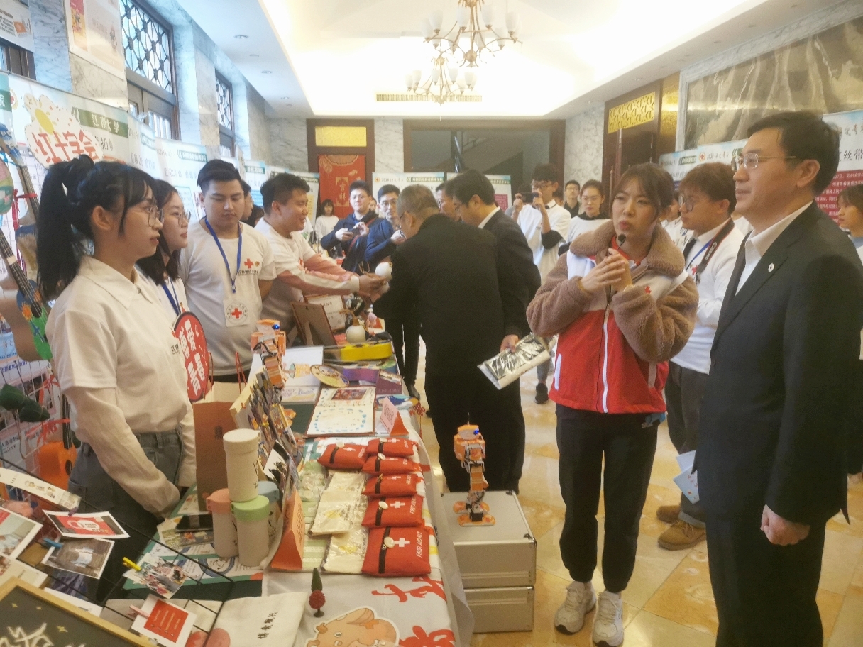 图2 江苏省红十字会党组书记、常务副会长齐敦品等领导到我校志愿服务展位前观摩指导