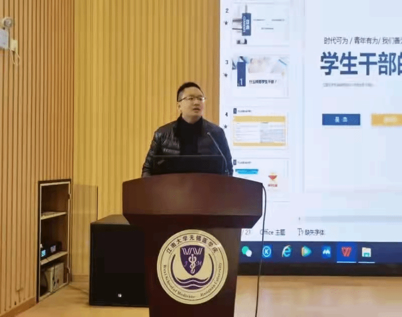 紧接着,吴老师从“什么是学生干部”,“是什么样的学生干部”,“做什么样的学生干部”三个发问引出主题,为同学们介绍了青马工程的主要目标与基本原则,通过分享亲身任职、实践经历,总结出了学生干部的“成”与“变”及其所需要的优秀品质。