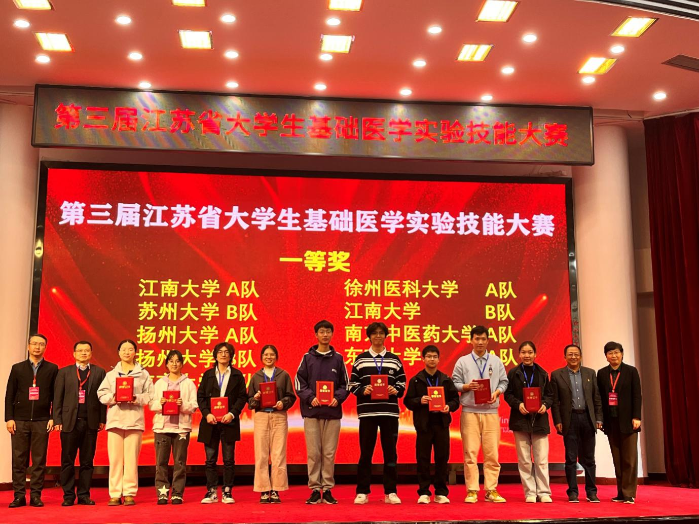 近日,由江苏省病理生理学会主办、徐州医科大学基础医学国家级实验教学示范中心承办的第三届江苏省大学生基础医学实验技能大赛圆满落幕。经过一个多月紧张而激烈的选拔与培训,我校机能学实验教学中心精心挑选出两支参赛队伍共8位同学,与来自南京大学、东南大学、南京医科大学、苏州大学、徐州医科大学等江苏省11所高等院校的23支代表队同台竞技,此次大赛吸引超过150名师生参与其中。