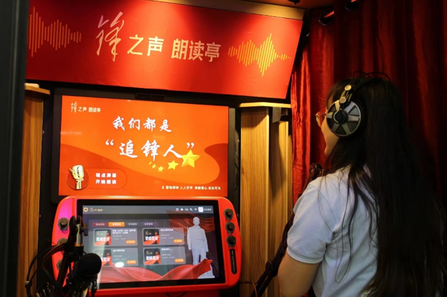 实践团成员在长沙雷锋纪念馆朗读亭朗读雷锋故事
