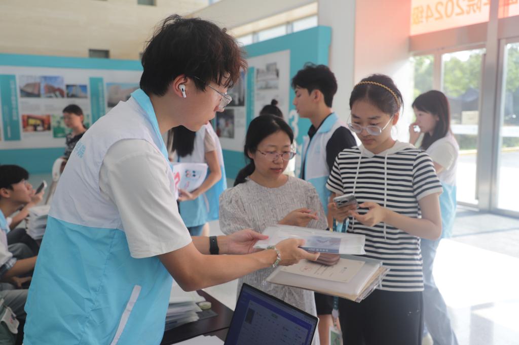 为引导新生尽快融入江大,确保报到流程顺畅无阻,学院提前做好充分准备,不但招募了一批活力四射的志愿者们在学院大厅及宿舍区都精心布置了接待站点,还提前为新生们准备了“爱心材料包”,不但包含专业成长指南和防诈提示,还有独家订制的白大褂和听诊器,除此之外学院领导及班主任、辅导员老师们全天在岗,欢迎各位新家庭成员的到来。学院门口矗立着一幅以"杏林新翠·筑梦江南"为主题的迎新喷绘,还拉起了"万里云程今发轫,杏林春暖始扬帆"的欢迎横幅,学院地面上铺设的医学特色指示地贴指引着新生们进入学院,完成报到的每一个步骤,学院大厅内江南医学学科建设展示让新生们对江南有了初步的了解。一旁安排有独具p站