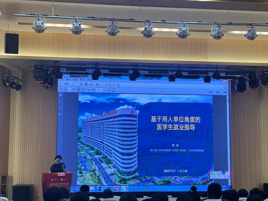 附属仁济医院杭州湾院区党办副主任周佳担任主讲嘉宾,活动吸引了100余名研本医学生及相关专业教师到场聆听。
