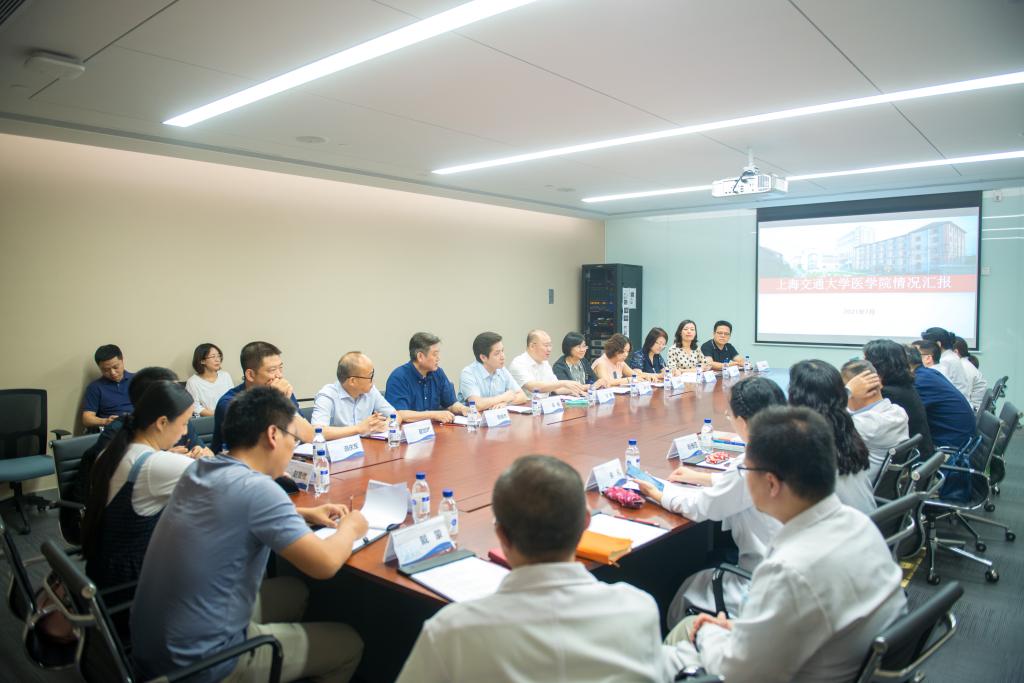 党委副书记施建蓉、科技发展处处长丁健青、瑞金医院副院长沈柏用、赵维莅等陪同调研。座谈会在瑞金医院转化大楼2楼1号会议室举行。