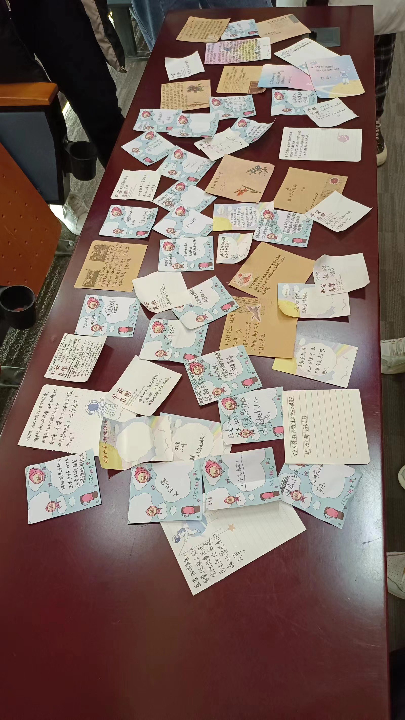 影片放映结束,每一位同学的卡片都写满了自己的感想,纸无空余,同学们在主持人的引导下相互交流观影感悟,通过观影的情节映射到自己的生活,互相袒露心扉,交流讨论。