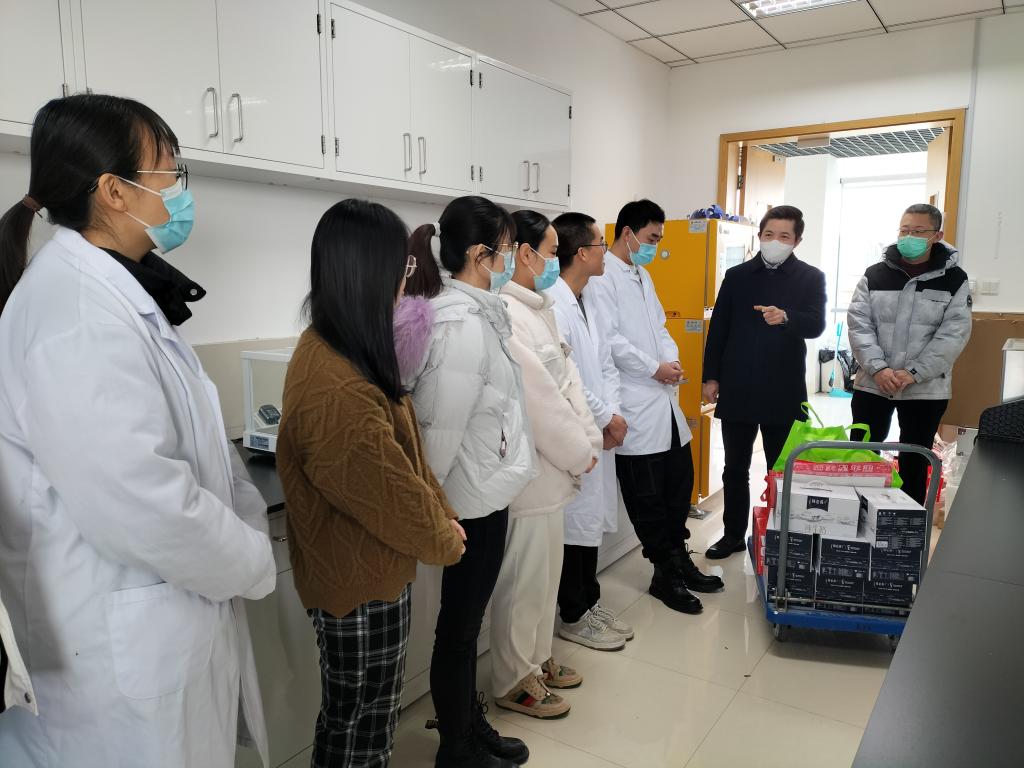 马鑫一行来到学院实验室,与留校学生进行了亲切交谈,了解每位同学的留校原因、科研进展以及在校生活情况,并送上新春慰问品,向留校学生致以节日的诚挚问候和新春的美好祝愿。马鑫表示,p站