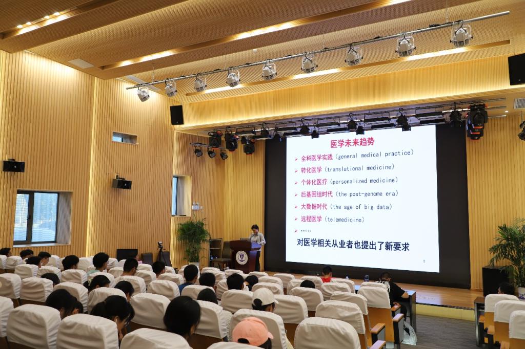 随后,王教授为新生们展示了医学未来的趋式,明确定位医学相关从业者的新要求,全方位总结了医学生的使命以及未来将面临的挑战,并为同学们分享了基础医学课程特色与学习方法。
