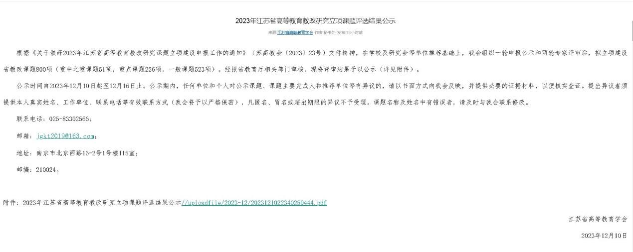 高等教育教改研究课题由江苏省高等教育学会主办,旨在增强高等院校教育改革创新能力与学生培养能力,大力推动我省高等教育、人才培养高质量卓越发展。本次立项建设省教改课题800项(重中之重课题51项,重点谋题226项,一般课题523项),p站