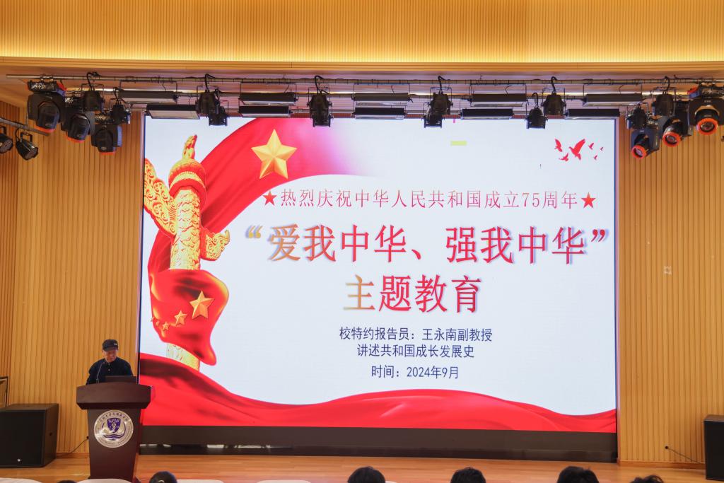 邀请学院关工委委员王永南副教授作“爱我中华、强我中华”爱国主义主题教育专题报告,2024级全体新生参与聆听学习。