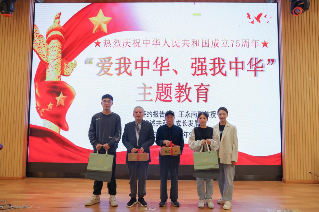 此次主题教育报告正值重阳佳节来临之际,为弘扬尊师重道、敬老爱老的传统美德,在讲座开始前,学院师生还特别为关心和支持关工委工作的校关工委副秘书长、学院关工委常务副主任吴骥一老师和学院关工委委员王永南老师送上重阳节慰问与祝福。