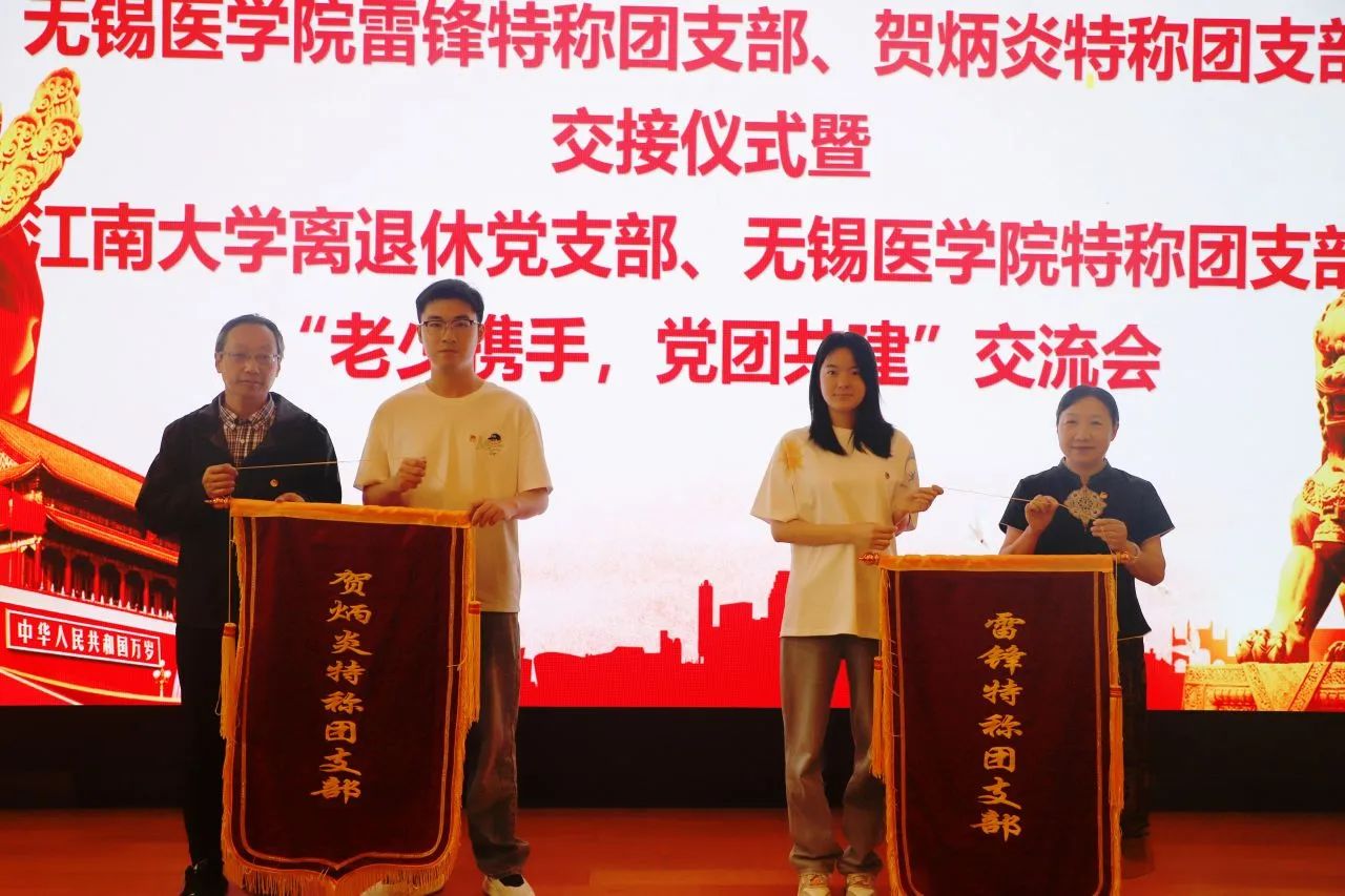 学院关工委兼职组织员丁晓嫣、范红斌为特称团支部授旗。接过特称团支部旗帜,就是接过了历史的接力棒,雷锋特称团支部与贺炳炎特称团支部庄严宣誓,将继续传承、发扬特称精神,发挥模范带头作用,以自身的言行引领广大团员青年坚定理想信念,积极投身于专业学习和社会实践,推动医学团员青年成长与进步。