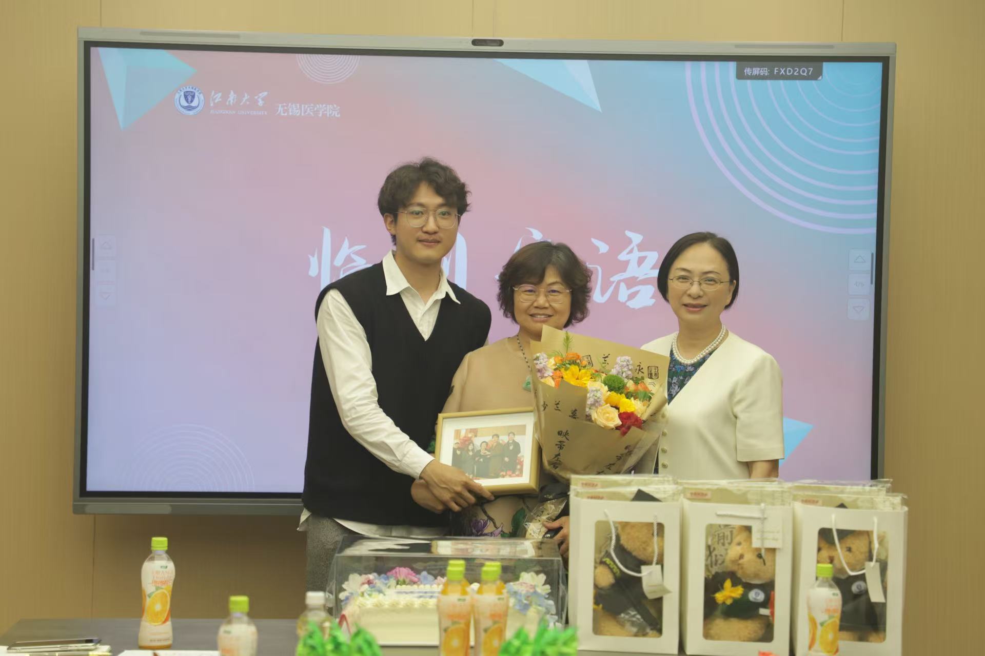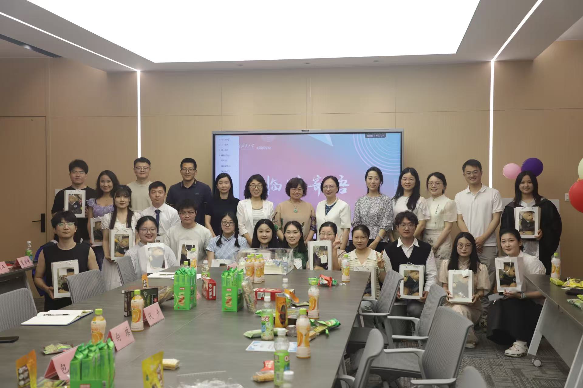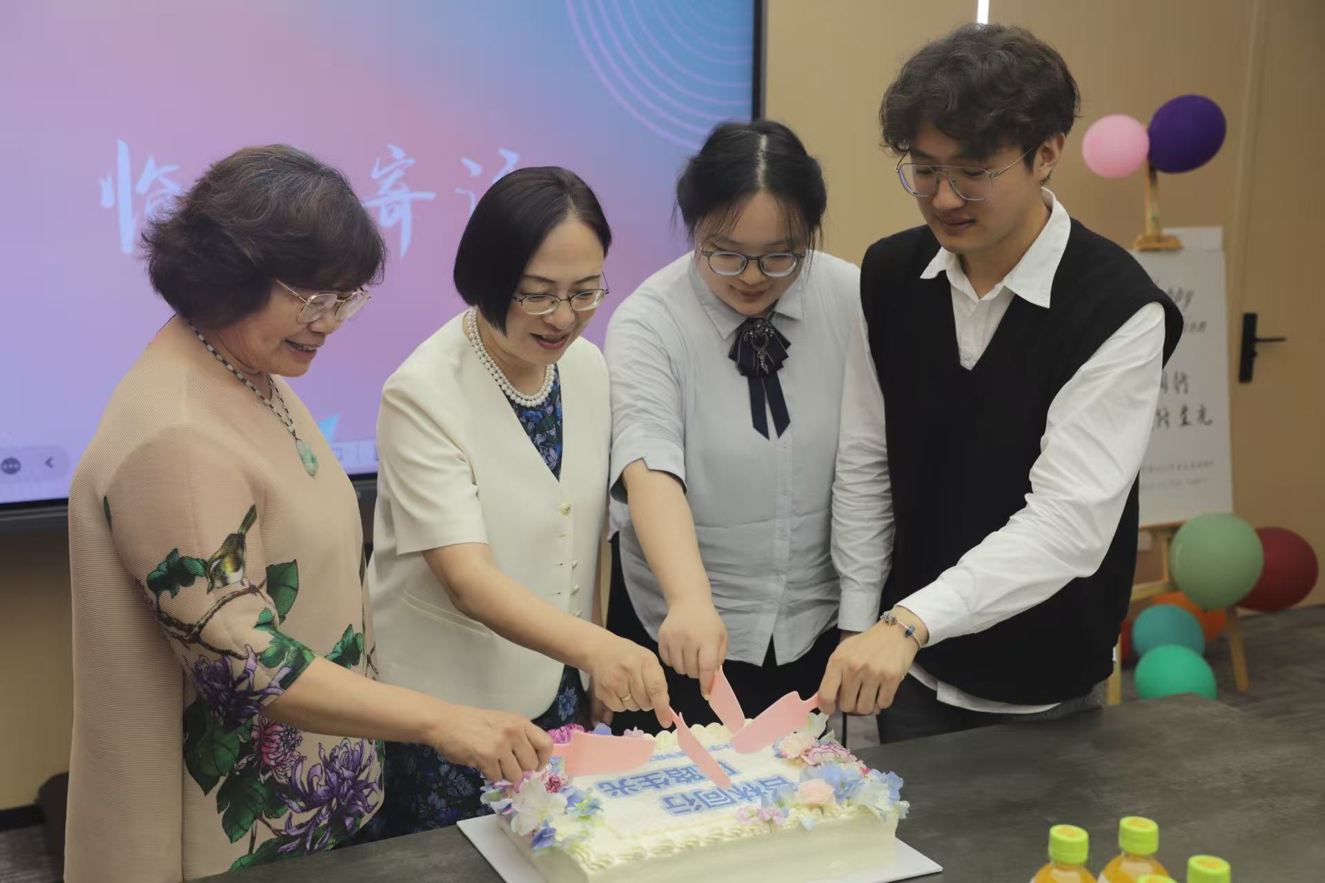 随后,一场由学院和毕业生悄悄准备、充满惊喜与温情的致敬荣休教师仪式将茶话会推向高潮。学生们以热烈掌声感恩致敬一直为学院为学生默默奉献的邱丽颖老师。毕业生代表用情真意切的感言回顾了邱老师在学院建设、专业教学、学生培养等方面的倾情付出。向琪为邱丽颖赠予 “桃李芬芳” 纪念合影相框,这份饱含深情的纪念相框讲述着邱老师播撒智慧、辛勤耕耘收获的满园硕果。邱丽颖深情回顾了从参与学院筹建到荣休在学院十余载,与师生并肩奋斗的时光,对同学们的成长蜕变与学院给予的关照支持表达诚挚谢意,祝福学院欣欣向荣,越办越好。