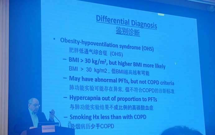Richard Castriotta教授以《睡眠呼吸暂停和重叠综合征》为主题,详细介绍了阻塞性睡眠呼吸暂停与慢性阻塞性肺疾病并发引起的重叠综合征以及它的临床症状、机制及治疗策略,并进一步阐述了睡眠呼吸暂停中的死亡,以及如何导致死亡的关键问题。