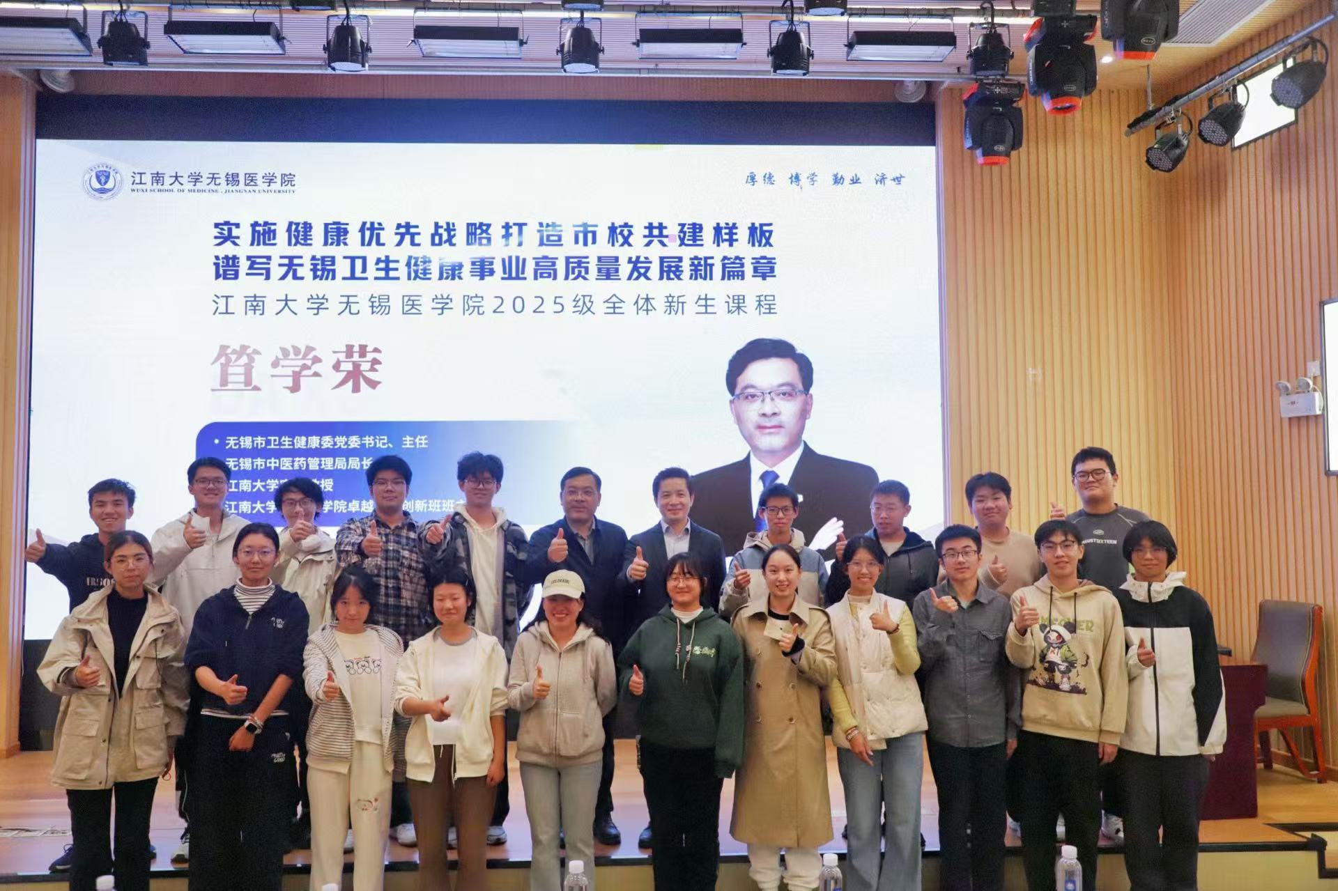 “杏林春暖”大讲堂,为2025级全体本科新生作题为“实施健康优先战略 打造市校共建样板 谱写无锡卫生健康事业高质量发展新篇章”的专题报告。p站