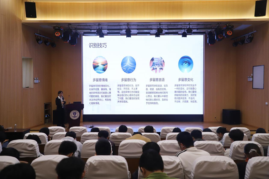 C101报告厅设为主会场,由毛健老师为低年级本科生心理委员、宿舍长开展专题授课,本场讲座同时面向全校各学院朋辈干部开放。附属医院南院区综合楼701室由卓越老师、附属中心医院北院行政楼805室由马春影老师分别面向高年级本科生、研究生开展培训。课程围绕角色定位、问题识别、科学帮扶、边界守护四大核心,结合宿舍适应、学业压力、人际矛盾、情绪崩溃等常见场景,传授倾听、陪伴、引导、反馈的实用技巧,明确“不诊断、不越位、守隐私”的朋辈帮扶原则,让学生骨干成为校园心理安全的“第一防线”。