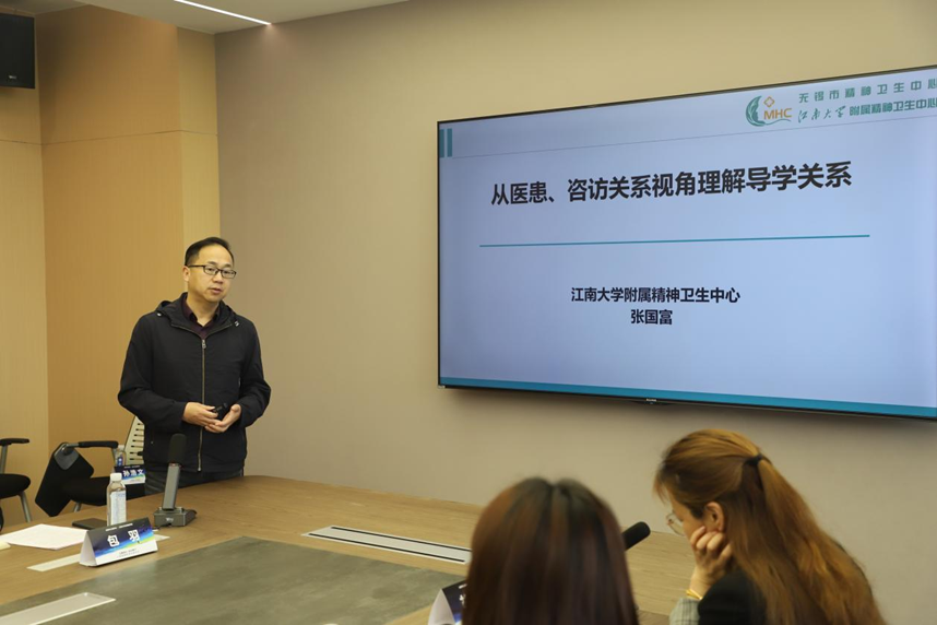 开幕式后,培训进入核心授课环节。无锡市心理学会理事长王国强主任以《大学生心理问题现状及对策》为题,结合全球与国内心理健康数据、高校典型案例,系统剖析大学生抑郁、焦虑、“空心病”、适应障碍等高发问题,解读心理问题诱因与识别要点,提出“早预防、强干预、夯队伍、建机制”的实操对策。随后,王国强主任与无锡市心理学会副理事长、秘书长张国富主任联合开展案例督导工作坊,围绕真实学生心理案例现场研讨、精准督导,为一线教育工作者提供可复制、可落地的危机处置思路。