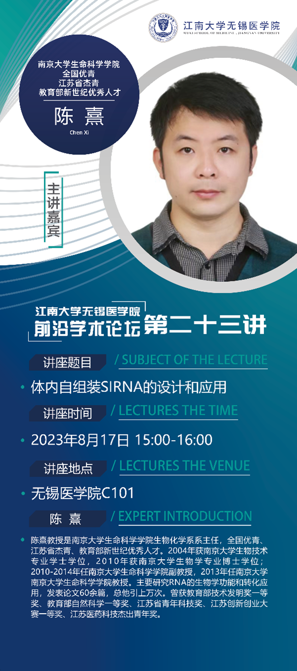 8月17日p站 前沿学术论坛第二十三讲 陈熹教授——体内自组装siRNA的设计和应用