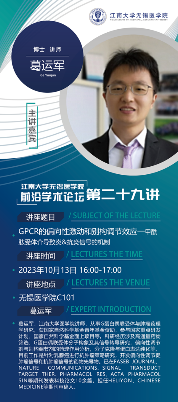 10月13日p站 前沿学术论坛第二十九讲 葛运军教授——GPCR的偏向性激动和别构调节效应—甲酰肽受体介导致炎&抗炎信号的机制