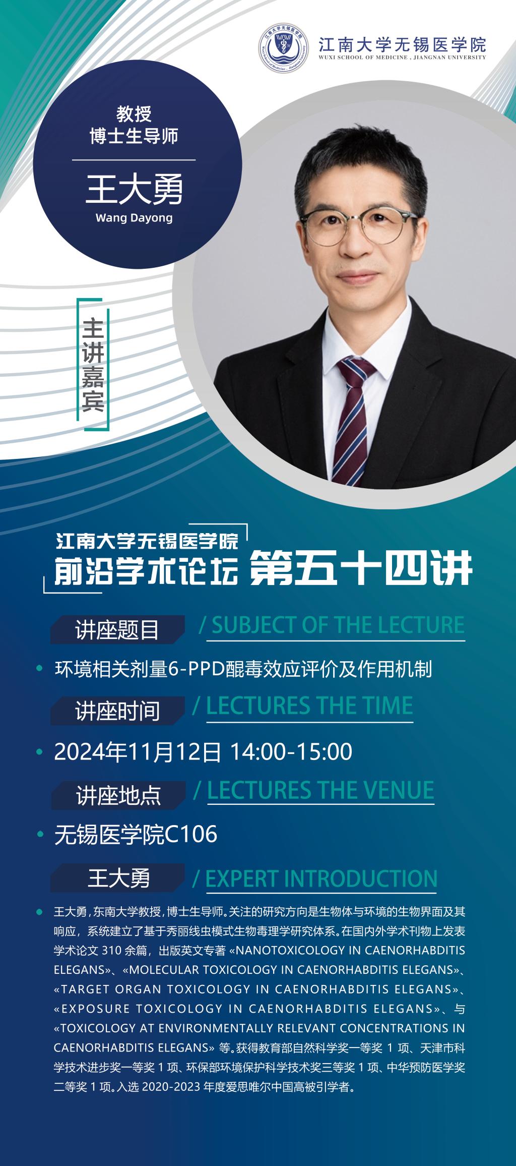 11月12日 王大勇:环境相关剂量6-PPD醌毒效应评价及作用机制