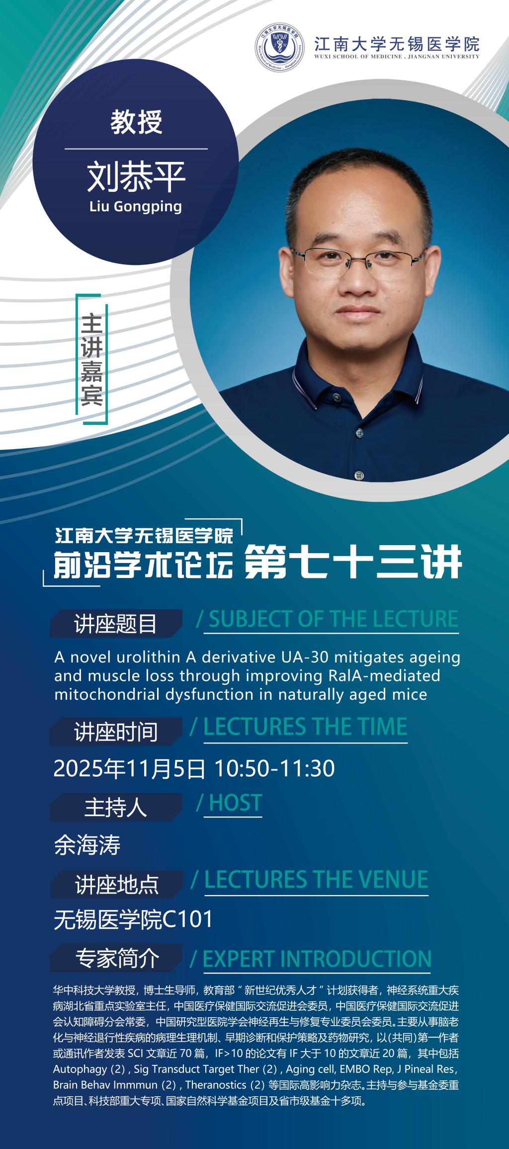 刘恭平:A novel urolithin A derivative UA-30 mitigates ageincand muscle loss through improving RalA-mediat edmitochondrial dysfunction in naturally aged mice