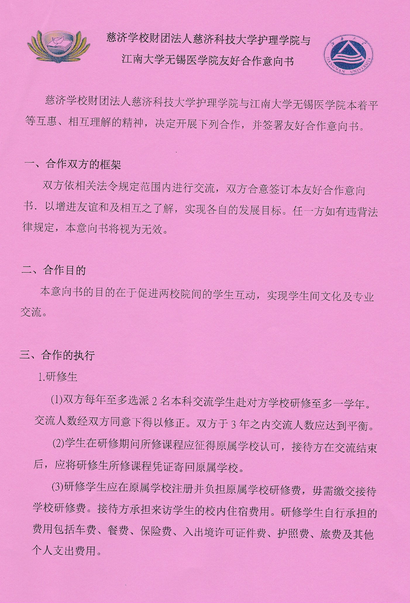协议规定双方每年可至多选派2名本科交流学生赴对方学校研修至多一学年,研修学生应在原属学校注册并负担原属学校研修费,毋需缴交接待学校研修费。同时,双方每年选派10名本科学生赴对方学校参加课程学习、暑期或冬季短期营队交流学习(10天至15天)。