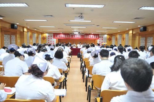 9月17日下午,以镇江市卫生计生委副主任邵教为领队,镇江市第一人民医院副院长蒋鹏程为组长的评审专家组一行13人莅临附院,在学术报告厅召开评审工作会议。无锡市卫生计生委党委书记、主任谢寿坤,副主任胡建伟,医政处相关领导,医院全体院领导及临床医技科室一、二级科正主任、职能科室负责人、支部书记、科护士长参加。